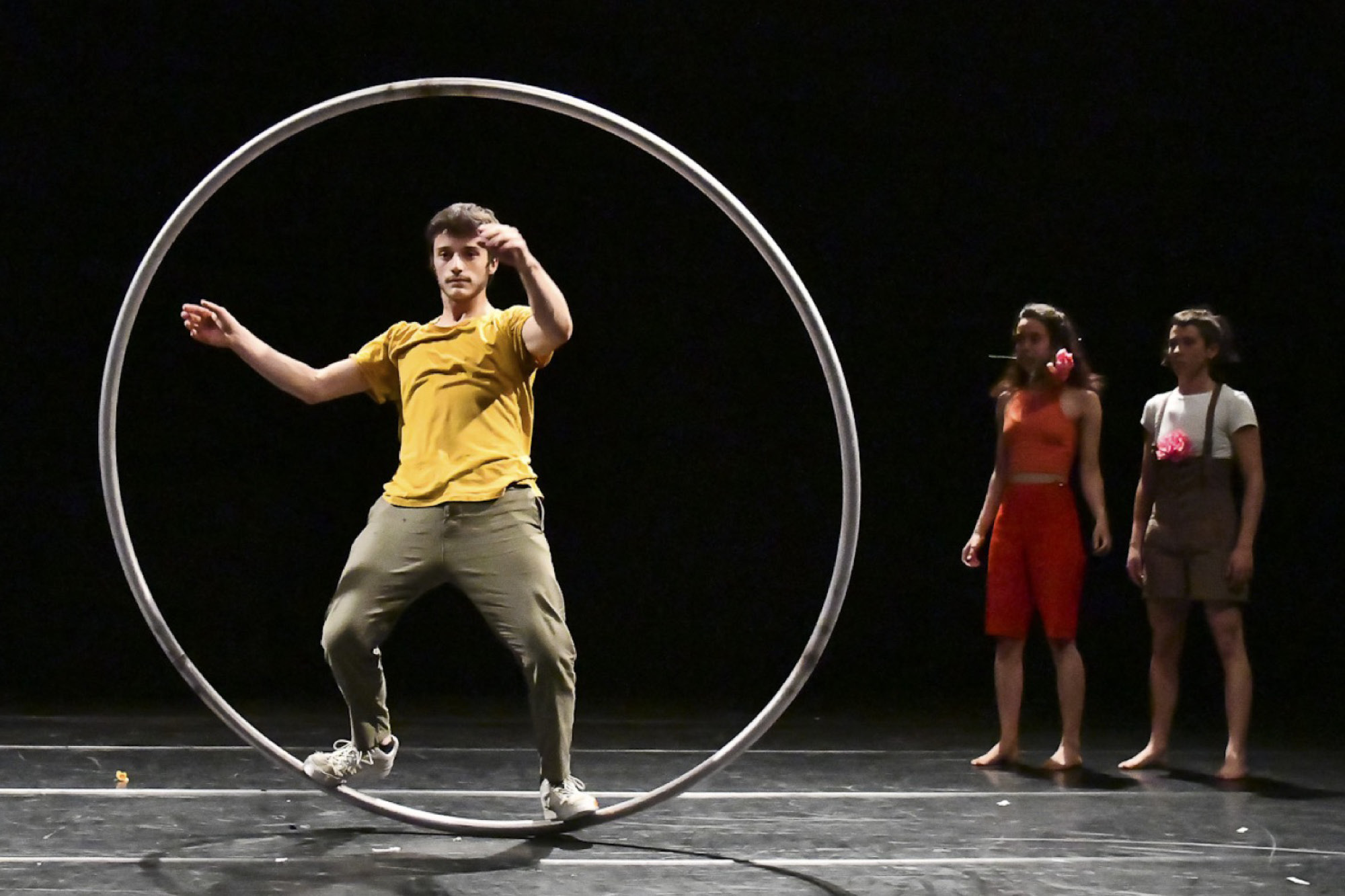 The training program includes a focus on an individual artistic project of the student. The development of the project will be accompanied and followed for the entire duration of the year: the objective is the staging of a short version of the personal artistic project. The training course will be enriched by physical preparation lessons, floor acrobatics, trampoline, handstands, acrodance, classical and contemporary dance, circus actor and theatre. Each student will have access to specific lessons according to their artistic and technical needs.