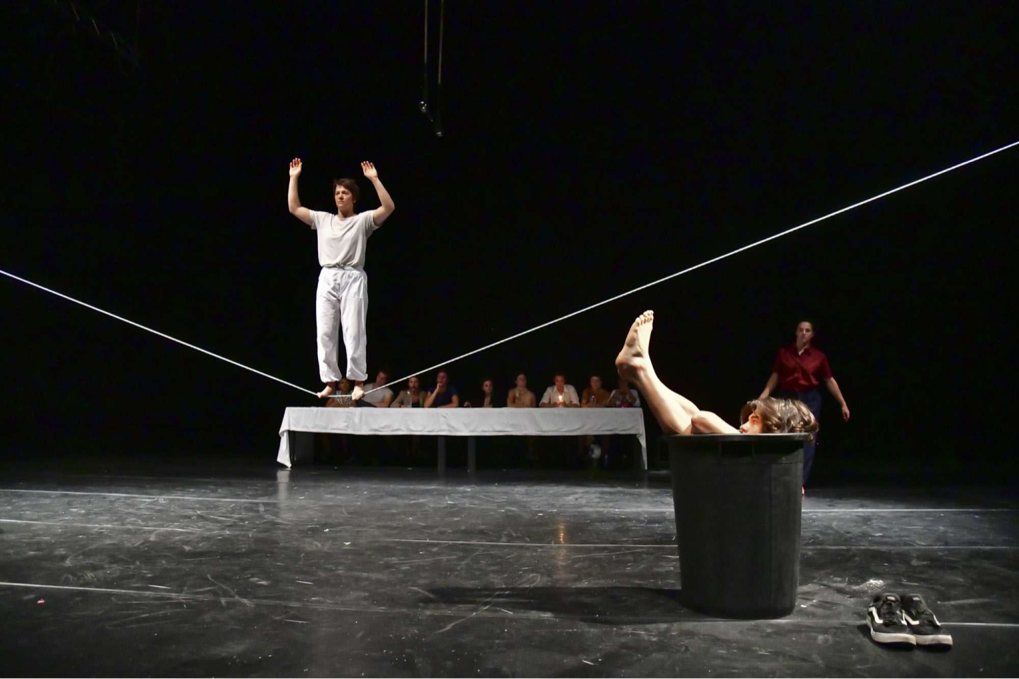 The student begins artistic research with respect to the technique of their own circus apparatus, which is metaphorically defined as “searching for one’s own home”. Each student is encouraged to seek their own way of using, experiencing and perceiving the instrument. It also deals with creation and representation, tracing the foundations for the personal artistic project. In parallel, the study and in-depth study of the study subjects of the first year continues.